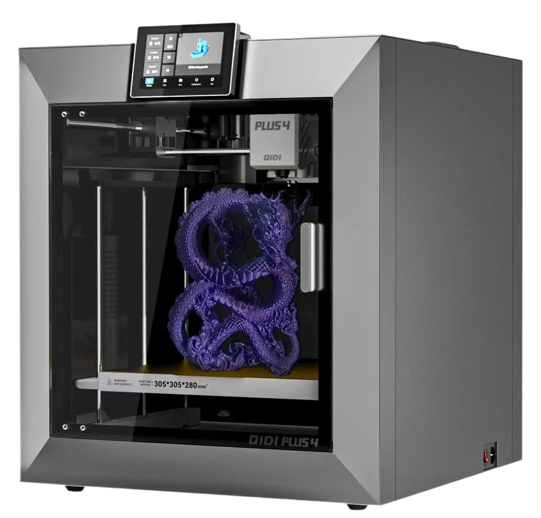3D Принтер QIDI plus 4— не просто очередной скучный 3D-принтер; это зверь, оснащенный более промышленными высококлассными функциями, такими как нагревательный элемент на 370 °C, нагреваемая камера мощностью 400 Вт и впечатляющий объем печати, который идеально подходит для проектов любого размера — от шлемов до небольших безделушек.