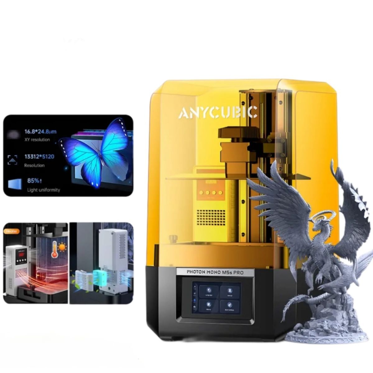 Anycubic Photon Mono M5s Pro оснащен 10,1-дюймовым монохромным ЖК-дисплеем с разрешением 13312х5120 и обеспечивает точность позиционирования по оси XY 16,8х24,8 мкм, что сопоставимо с толщиной волоса. Равномерность распределения излучения была увеличена до 85 %, что позволяет обеспечить воспроизведение мельчайших деталей и четких краев.