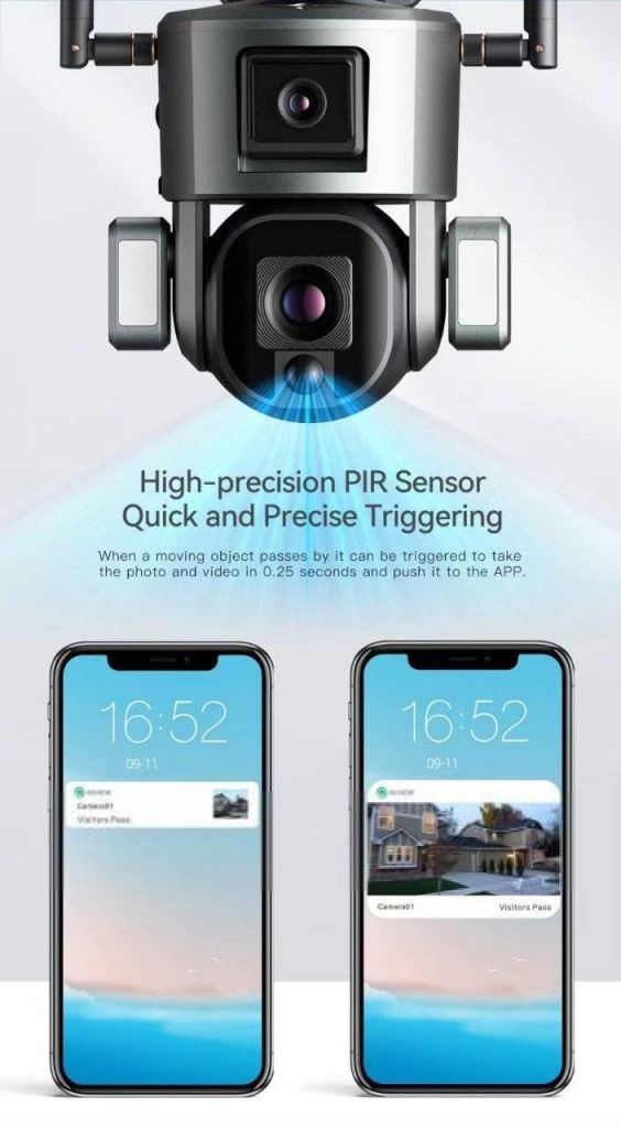 Система камер с двумя объективами * Один объектив широкоугольный, 1-кратный зум * Один объектив с 10-кратным зумом Эта камера безопасности может четко видеть больше деталей масштабирования с изображением UHD, предоставляя вам лучший визуальный опыт, непревзойденный другими продуктами в рынок. Поймите, чтобы увидеть больше