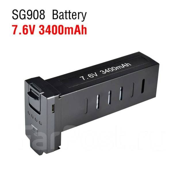 - Аккумуляторная батарея для квадрокоптера дрона SG906 имеет два типа напряжения: 7,4 В и 7,6 В. Емкость аккумулятора составляет 2800 мАч или 3400 мАч в зависимости от модели дрона. Например, для SG906 Pro подходит аккумулятор 7,4 В 2800 мАч, а для SG906 Pro 2 - аккумулятор 7,6 В 3400 мАч