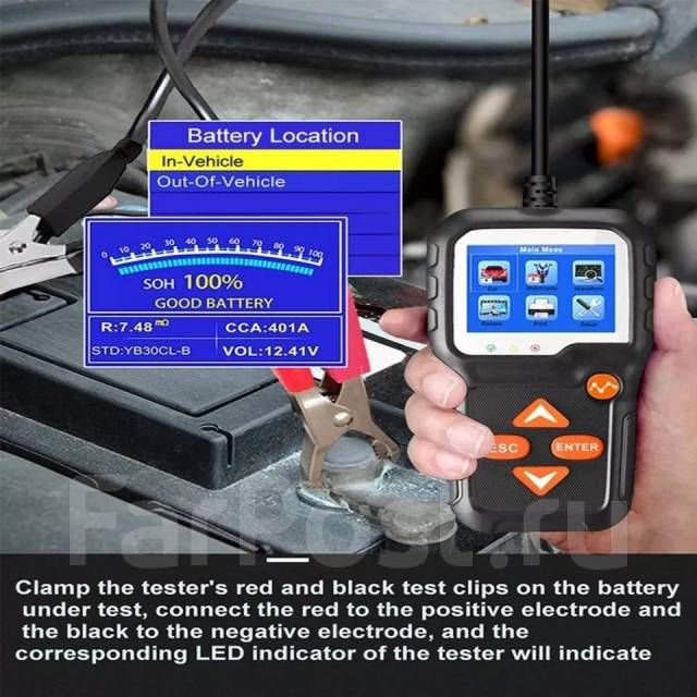 Данный тестер аккумуляторов совместим с батареями напряжением 6 и 12 Вольт. Способен отображать результаты тестирования как в текстовом, так и в графическом виде на 2,4-дюймовом дисплее. Само напряжение аккумулятора изображается в виде волны.
