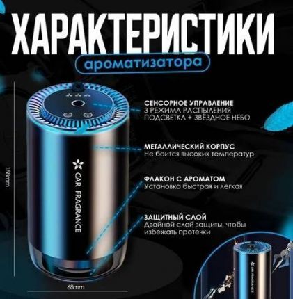 Вашему вниманию представляется ароматизатор в машину с автоматическим распылителем, который превратит ваш автомобиль в настоящий рай запахов. Этот умный освежитель воздуха прекрасно подойдет для мужчин и женщин, станет отличным подарком для любого автолюбителя, мужчины, папы, парня и мужа или просто аксессуаром, добавляющим нотку стиля и комфорта в вашей машине.