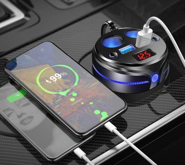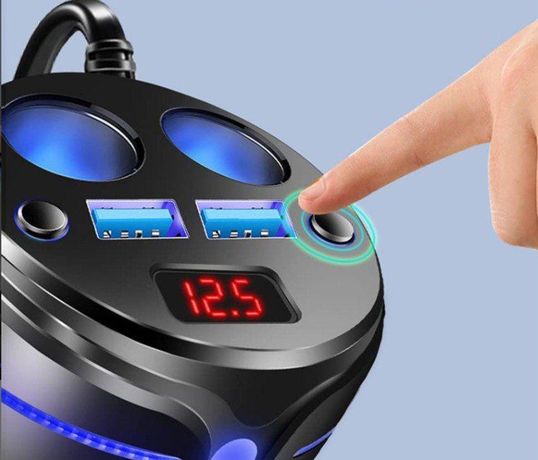 Внешний вид прикуривателя чашевидный, который подходит для всех автомобилей с подстаканниками. Сделайте его более стабильным при использовании в автомобиле, не будет трястись, и использовать электричество более безопасно. Корпус чашки оснащен синей атмосферой света, который не только играет декоративную роль в ночное время, но и позволяет хорошо видеть интерфейс зарядного устройства. 2 гнезда прикуривателя с независимым переключателем. Достаточно для одновременной зарядки различных портативных приборов, таких как GPS, видеорегистратор, автомобильный рекордер, автомобильный холодильник и т. Д.. Независимые переключатели включения/выключения для каждой розетки сигареты. Просто нажмите кнопку, чтобы включить или выключить вместо подключения и выключения ваших устройств, это может продлить срок службы ваших устройств. 2 порта БЫСТРОЙ ЗАРЯДКИ USB. 2 порта быстрой зарядки USB заряжаются в 4 раза быстрее, чем обычные зарядные устройства, буксируют интеллектуальные порты 5V / 3.1A для большего количества вариантов зарядки. Это автомобильное зарядное устройство может заряжать 2 USB-устройства одновременно, подходит для телефона, MP3, планшета, Kindle, USB-вентилятора, USB-света и т. д. Мониторинг напряжения в режиме реального времени. Светодиодный вольтметр отображается при включении, который может контролировать аккумулятор вашего автомобиля в режиме реального времени и держать ваше вождение в безопасности все время. Светодиодный индикатор также очень удобен для проверки состояния подключения питания. Защита безопасности. Встроенный предохранитель 10A предотвращает короткое замыкание, перенапряжение, перегрузку по току, перегрев и перегрузку автомобиля и ваши устройства. Интеллектуальная технология IC может интеллектуально обнаруживать и обеспечивать наилучший ток и скорость для всех зарядных устройств.