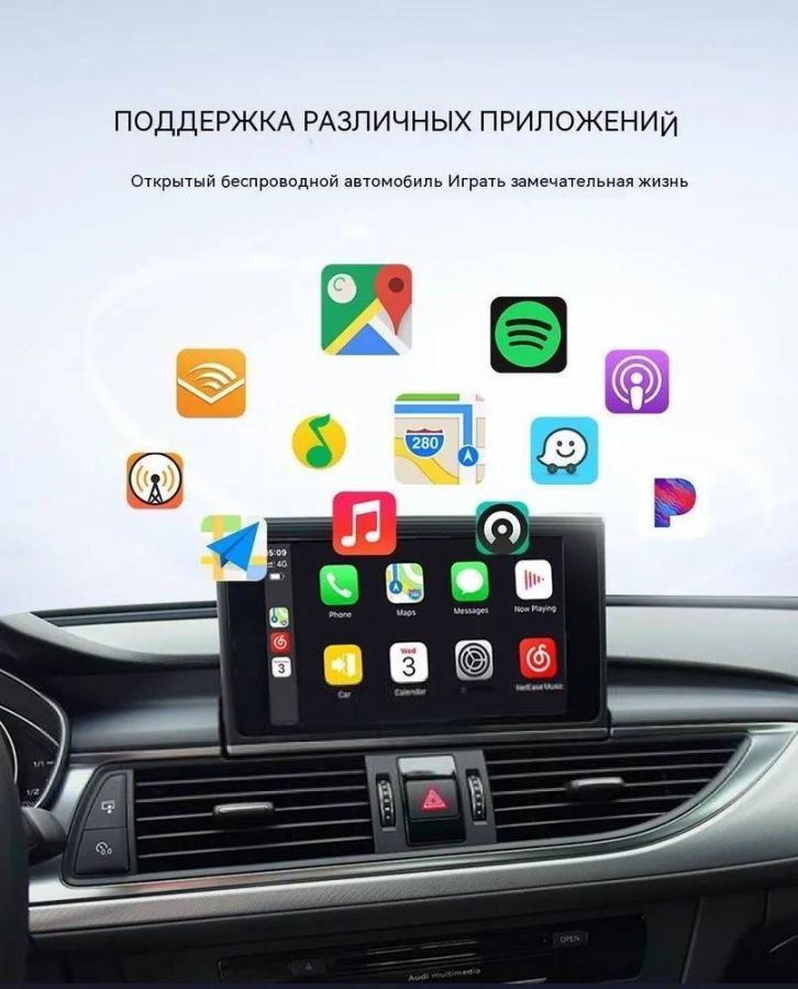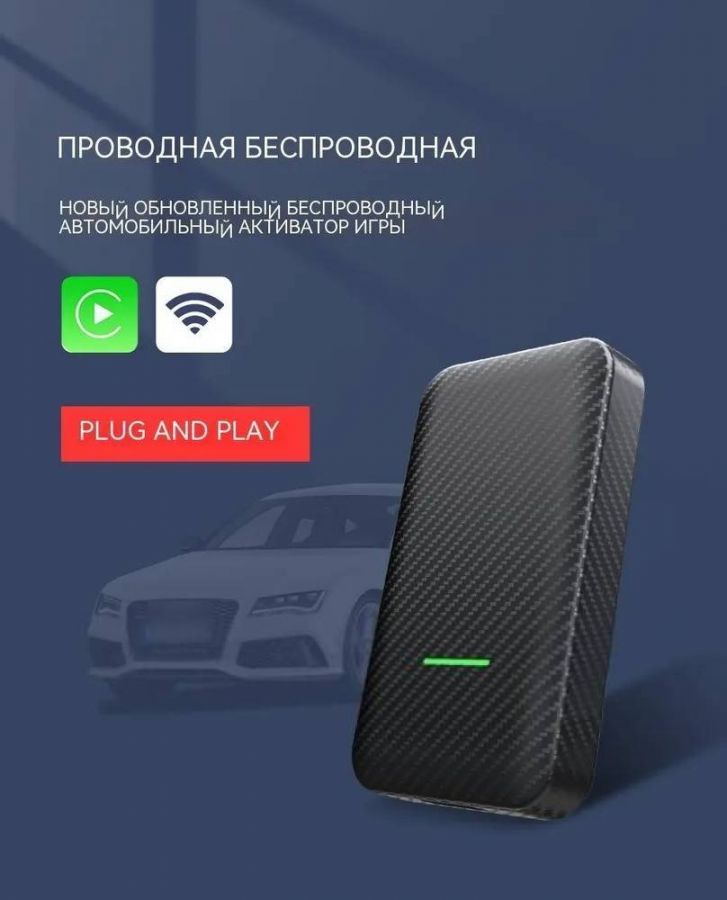 Это компактный usb-мультимедиа центр работающий на собственной операционной системе ios , который позволяет вам получить полноценный беспроводной Apple CarPlay uto без необходимости подключать телефон по кабелю в usb гнездо вашего автомобиля!