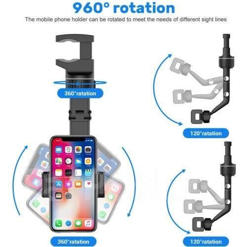 Держатель для телефона на зеркало заднего вида с поворотом на 360 градусов - это устройство, которое крепится на зеркало заднего вида автомобиля и позволяет удобно использовать телефон во время поездки. Он может быть использован для GPS-навигации или для просмотра видео.