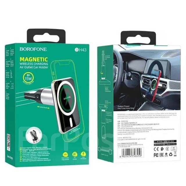 BH43 - это автомобильный держатель от бренда BOROFONE, лидера на рынке аксессуаров для мобильных. BH43 является современным решением среди автомобильных держателей. Его удобство заключается в двух основных моментах: магнитный способ фиксации телефона (MagSafe) и беспроводная зарядка (QI).
