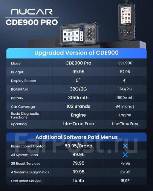 Сканирующий инструмент CDE900 Pro предлагает множество дополнительных функций для обновлений, в том числе самые популярные системы диагностики ABS/SRS/TCM/ECM (39,95 долларов США), полную диагностику системы (99,95 долларов США), 28 функций обслуживания Двунаправленные функции .