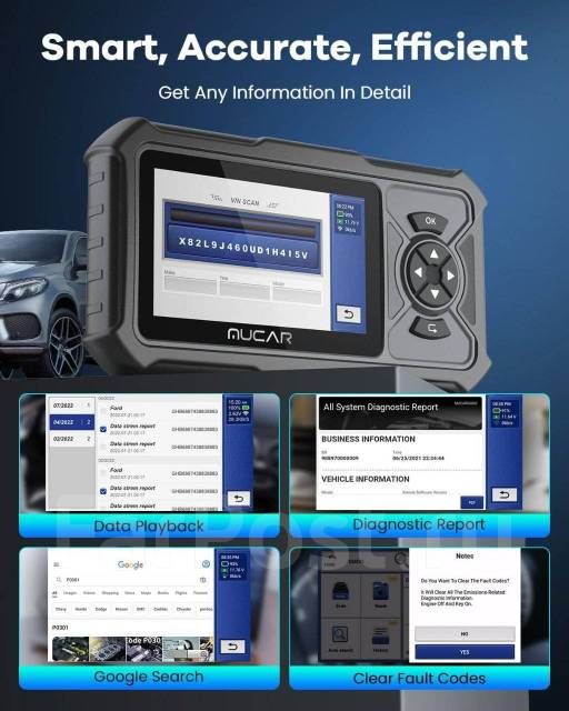 Система ОС Android 6,0 , четырехъядерные процессоры 2,0 ГГц. Мощная обработка данных для углубленной диагностики: не пропустите ни одной проблемы с автомобилем.