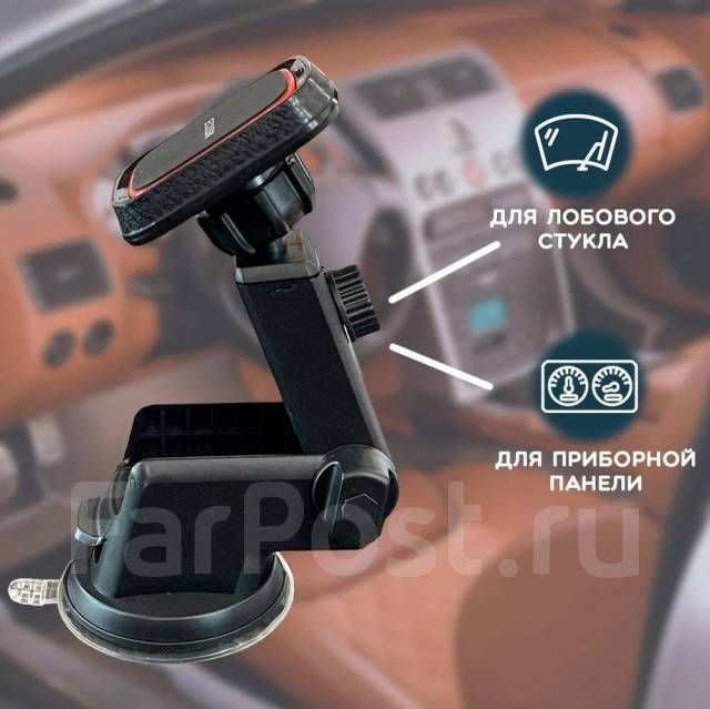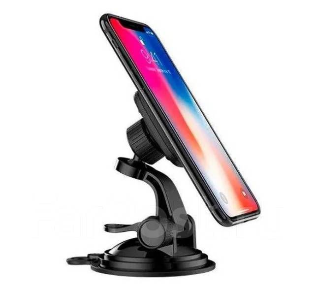Магнитный держатель для телефона автомобильный можно установить на панель приборов или зафиксировать на лобовом стекле при помощи вакуумной присоски и прижимного механизма, которые рассчитаны на многократное использование. Также автомобильный держатель для телефона можно использовать в облегченном варианте и закрепить на любую гладкую и ровную поверхность при помощи клейкой основы.