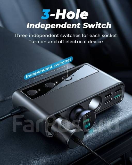 5. Независимая конструкция переключателя: 3 клавишных переключателя на заднем сиденье могут независимо контролировать ток прикуривателя и оснащены дисплеем с белым светом.