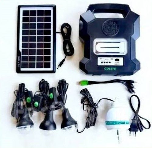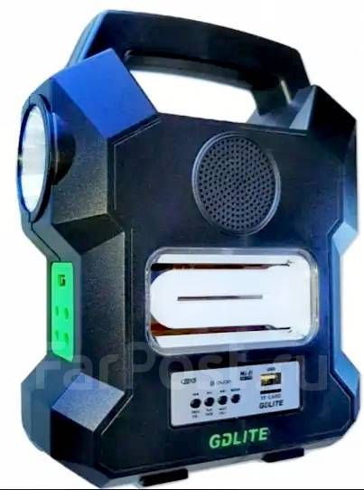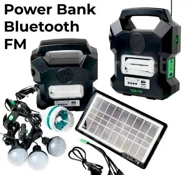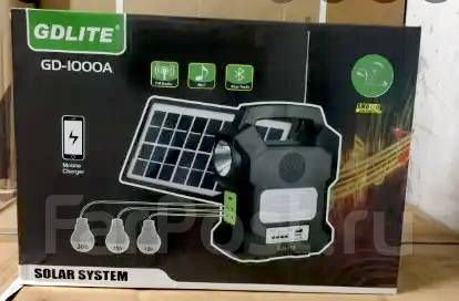 Портативная автономная зарядка солнечная система-станция надёжный повербанк из солнечной панелью GDLITE-1000А с FM радио 4-ма лампочками, блютуз (Bluetooth), ВТ колонка и встроенный фонарь
