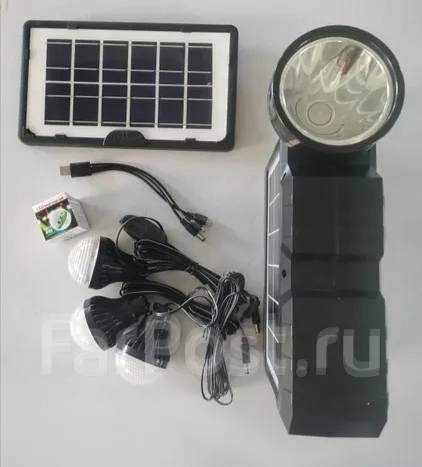 Комбинированный мобильная солнечный электростанция в комплект с фонарем, проигрывателем MP3 (с USB и micro-sd носитель), Fm радио.