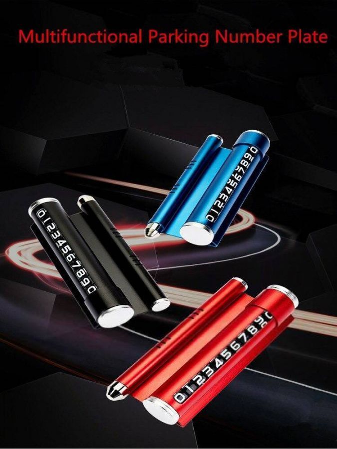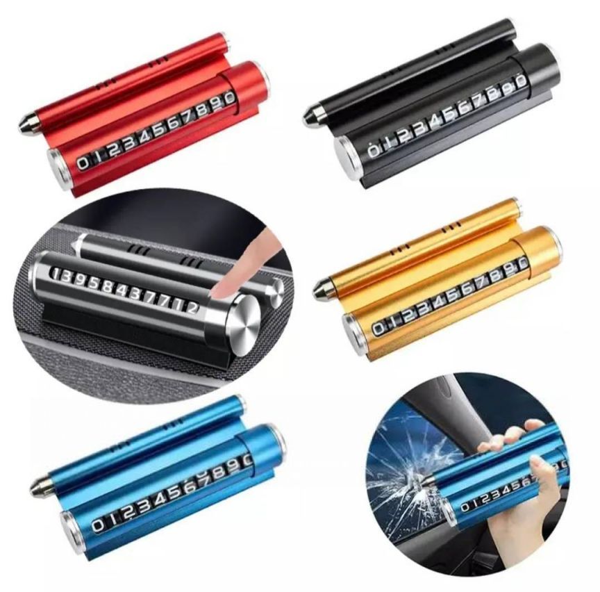 Автовизитка для указания одного телефонного номера. Путем подбора нужных цифр из набора составляется номер владельца автомобиля,аварийный молоток,подставка для мобильного телефона .