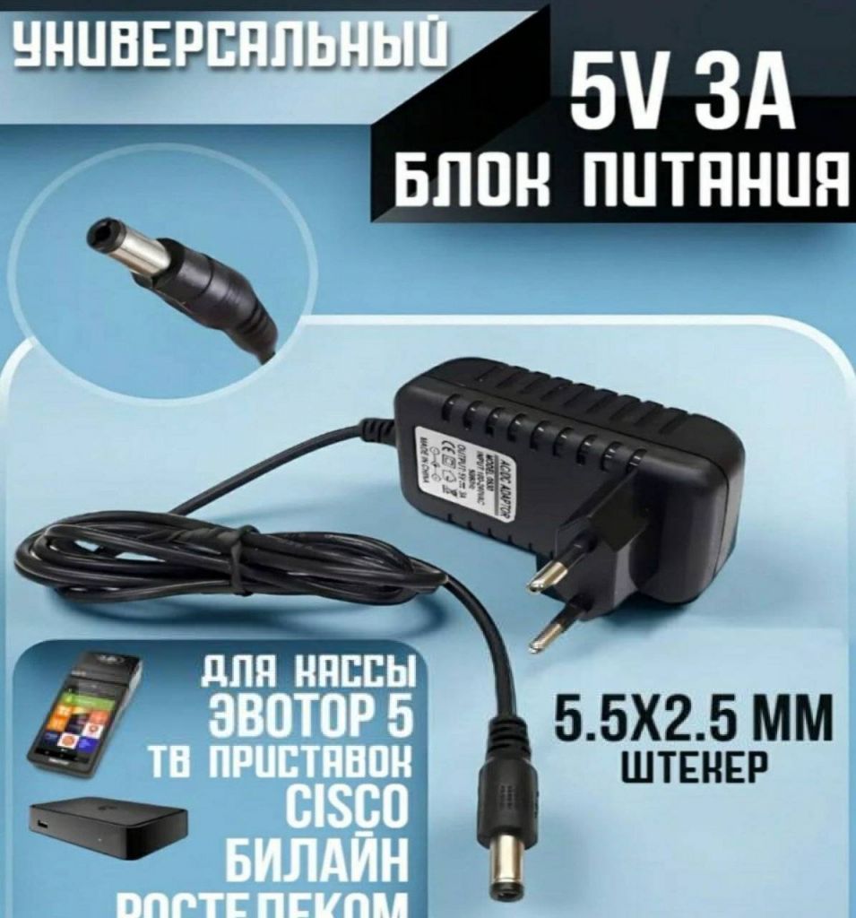 Блок питания представляет собой надежное электропитание, специально разработанное для обеспечения бесперебойной работы этого устройства. С напряжением 220В и выходным напряжением 5 вольт, этот зарядник с максимальным током 3 ампера гарантирует стабильное энергоснабжение вашей кассовой системы. Выполненный с высоким стандартом качества, зарядка оборудована выходным наконечником с внешним диаметром 5.5 мм и внутренним диаметром 2.5 мм, что обеспечивает идеальную совместимость с кассой Эвотор 5. Это позволяет вам быть уверенными в том, что ваша кассовая система работает эффективно и надежно. Кроме того, адаптер может успешно питать приставки для телевизоров от ведущих производителей, включая Ростелеком, CISCO, Билайн и другие устройства.Обеспечивая стабильное электропитание, этот блок питания станет незаменимым аксессуаром для вашего бизнеса или домашнего офиса.