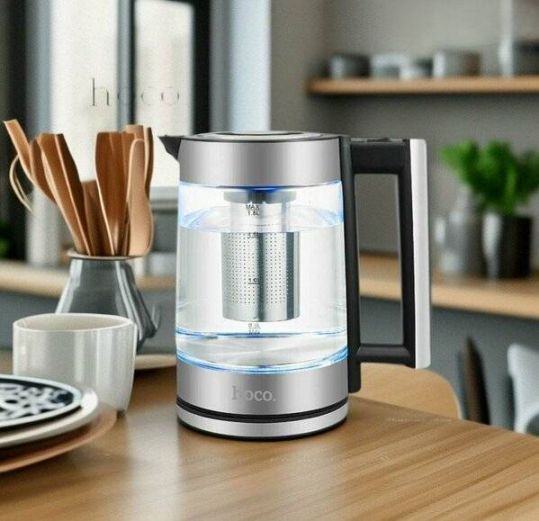 Позвольте себе и своим близким качественный, стильный, современный, мощный и вместе с тем бесшумный электрочайник бренда "hoco." серии "premium product". Он отлично впишется в интерьер любой кухни и станет неотъемлемой её частью. Особенности модели: не имеет запаха пластика, корпус из прочного термостойкого и морозостойкого боросиликатного стекла,