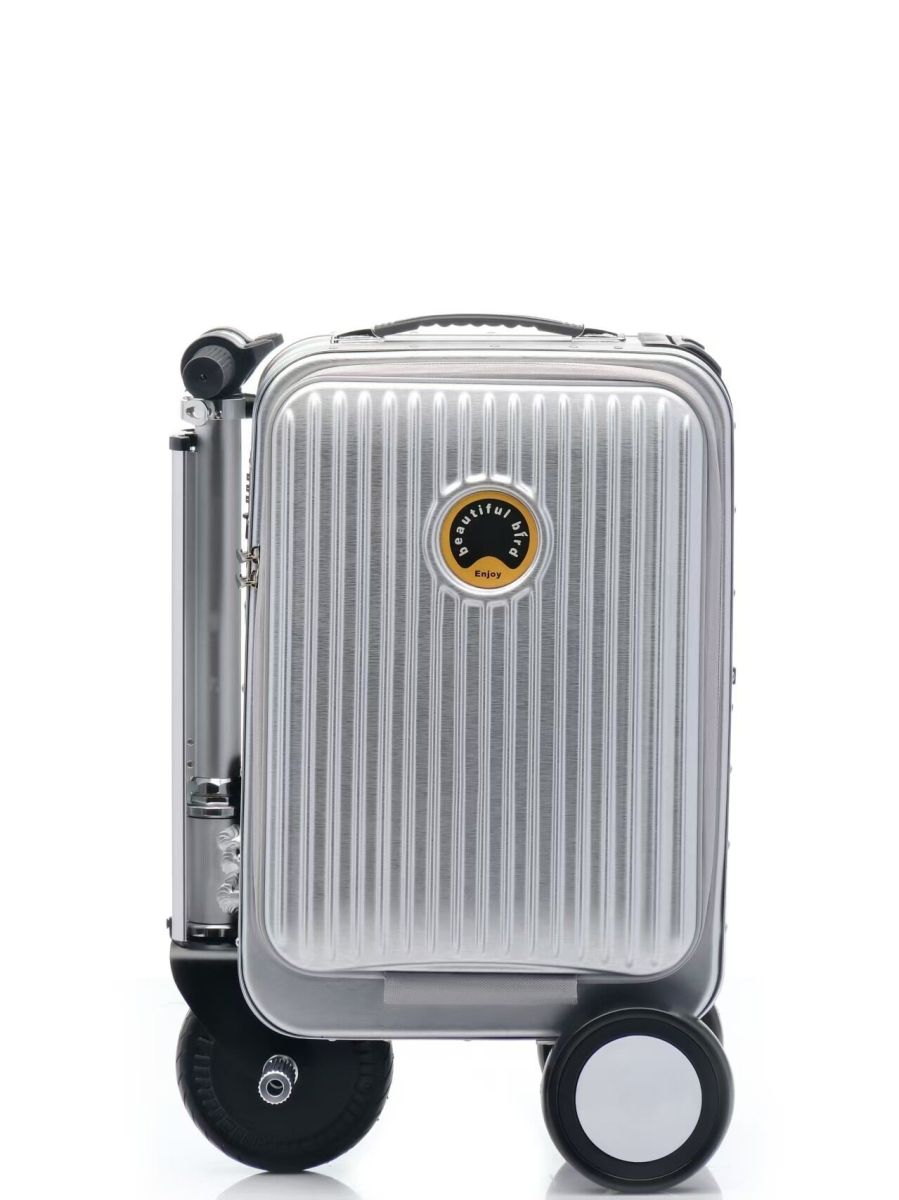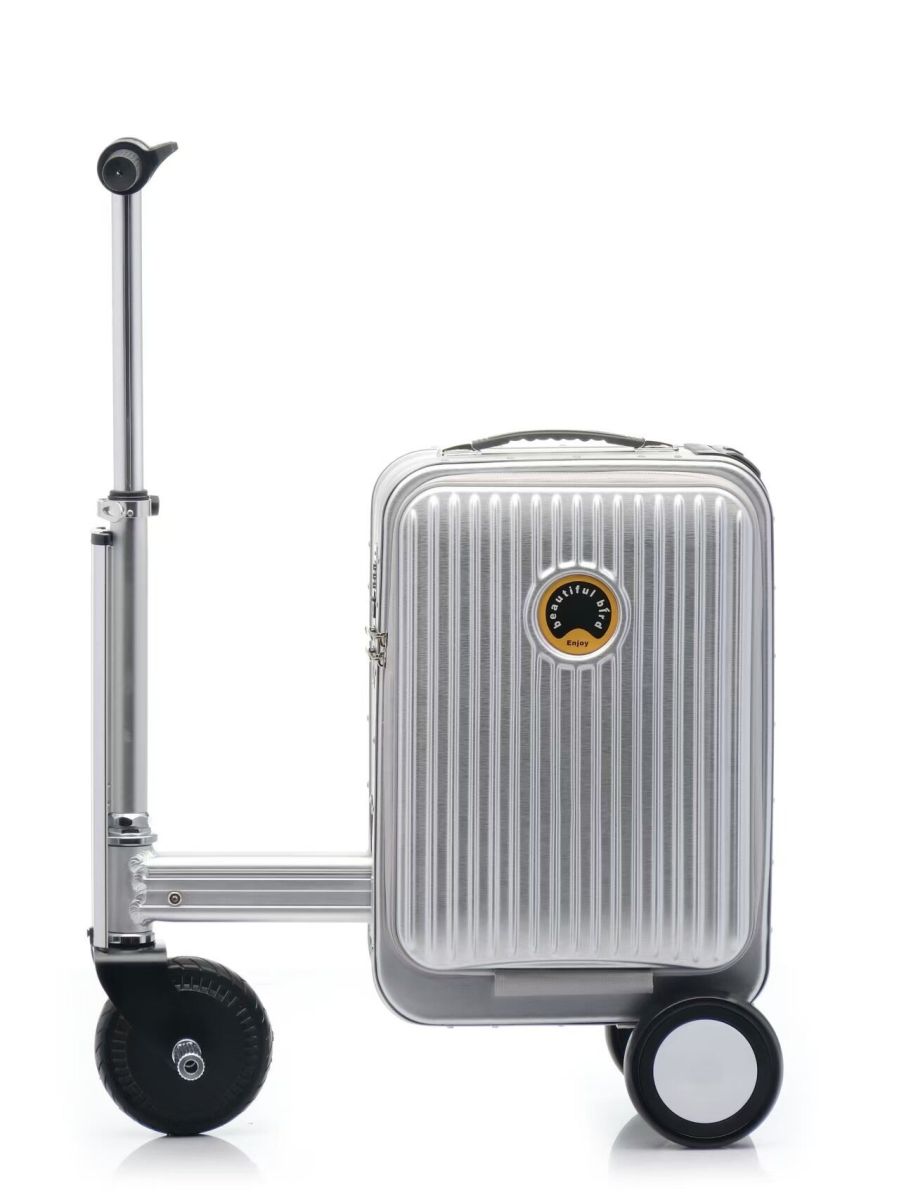 Стильный и функциональный чемодан-самокат серебристого цвета — идеальное решение для современных путешественников, ценящих комфорт, скорость и практичность. С этим универсальным аксессуаром перемещение по аэропортам, вокзалам и городским улицам становится легким и удобным.