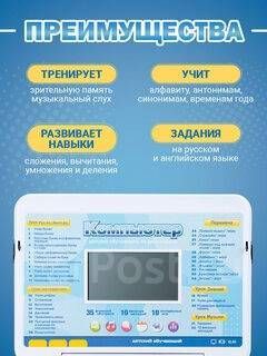 Детский обучающий компьютер на двух языках: английском и русском - это полезная и практичная игрушка, которая поможет вашему ребенку выучить новые слова, подготовиться к школе и развить свои навыки.