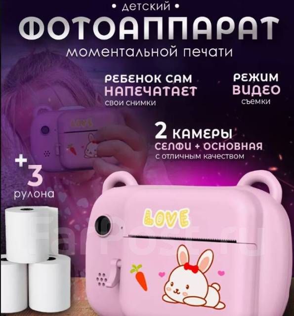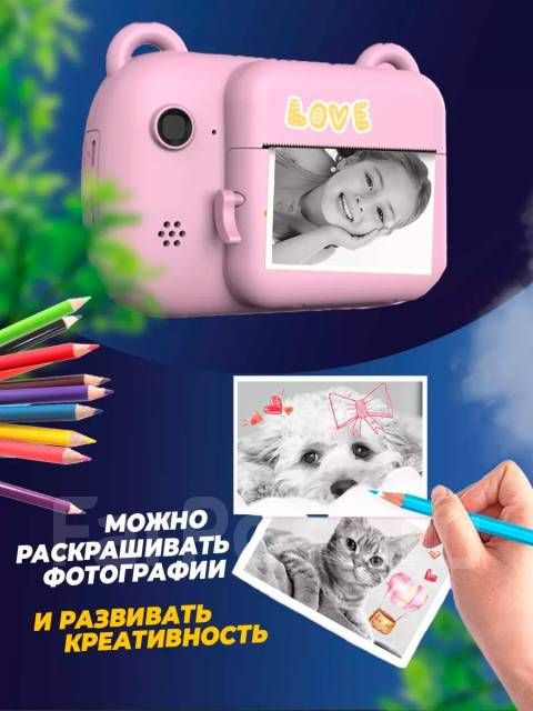 Фото печатаются на быстрой скорости черным цветом, их можно разукрасить карандашами или стикерами, а также распечатать фото на стикерной термобумаге и получатся наклейки. Быстро заряжается. Если вы ищете подарок на день рождения для ребенка, то это будет - отличный выбор! Наш фотоаппарат, позволяет создавать мгновенные воспоминания и сохранять их на долгие годы. Они идеально подходят для детских дней рождения, когда дети могут делать фотографии и сразу же выдавать их в качестве подарков для гостей. Это не просто polaroid фотоаппарат, а целый комплект для фотографирования. Кроме того, он является отличным способом познакомить ребенка с техникой и фотографией. Он также может стать стимулом для развития творческих способностей ребенка. Таким образом, если вы ищете подарок на день рождения для девочки или мальчика, то детский фотоаппарат моментальной печати - это замечательный выбор.