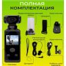 Комплектация: Экшн камера; Водонепроницаемый чехол; Петличный микрофон; Шнурок; Крепление; Крепление прищепка; Кабель зарядки.