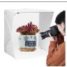Складной фотобокс раскрывает новый уровень возможностей в мобильной фотографии, подходит для съемки небольших предметов и разработан для использования не только с фотокамерами, но и со смартфонами или планшетами. Фотобокс позволяет получить снимки со студийным качеством, используя смартфон и простые настройки. Применяется в предметной съемке для интернет-магазинов, печатных рекламных каталогов и т. д. Фотобокс является портативной мини-студией и представляет собой белую складную конструкцию, 4 фона и светодиодные ленты. Питание подсветки осуществляется с помощью USB кабеля, подключаемого к зарядному устройству или внешнему аккумулятору PowerBank (зарядное устройство и аккумулятор приобретаются отдельно). В комплект входят белый, черный, зеленый, красный фоны для различных художественных эффектов. Складывается в аккуратный чехол-сумку для удобной переноски и хранения.