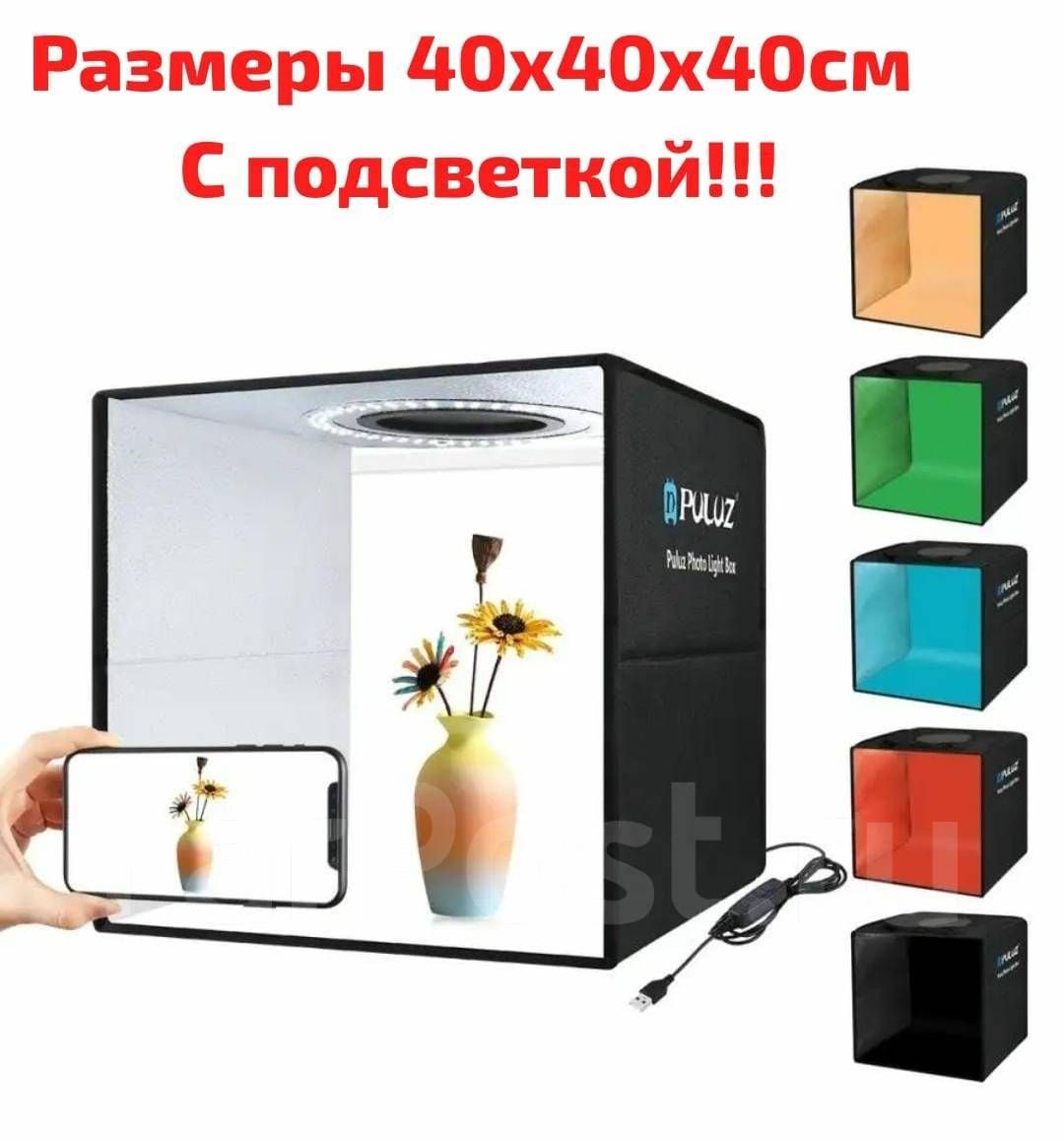 Читать все статьиФотобокс лайтбокс 40x40x40см.с подсветкой + 6 Puluz