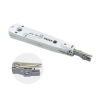 Инструмент для заделки и обрезки витой пары 110 HT-3141 (TL-3141) REXANT предназначен для забивки/заделки и зачистки проводников во врезные контакты на кроссах, патч-панелях, розетках и модулях, заделка контактов 110-го типа и типа KRONE. Нож инструмента снабжен ножницами для автоматического отрезания излишка кабеля при заделке контакта, в рукоятке ножа имеются специальные крючки для извлечения кабеля из разъема. Инструмент выполнен из качественной инструментальной стали. Удобная пластиковая рукоятка сделает эксплуатацию инструмента более комфортной и убережет от соскальзывания из рук.