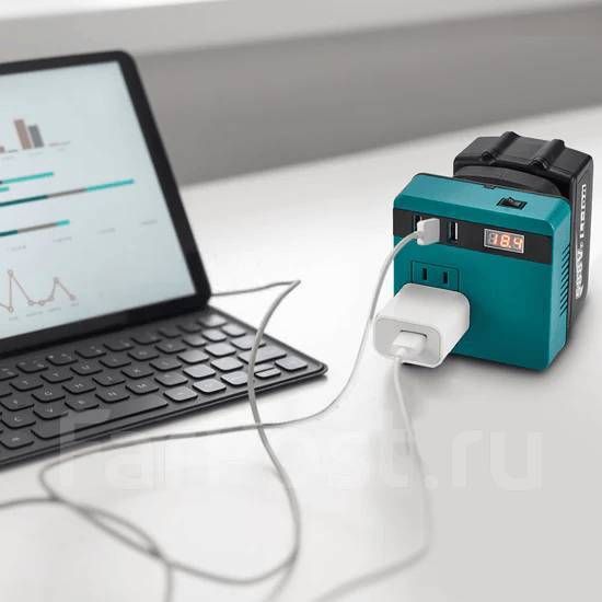 Эффективно преобразует напряжение 18 В постоянного тока от аккумулятора Makita в стабильное напряжение 220 В, обеспечивая надежный источник питания для оптимальной работы устройства.