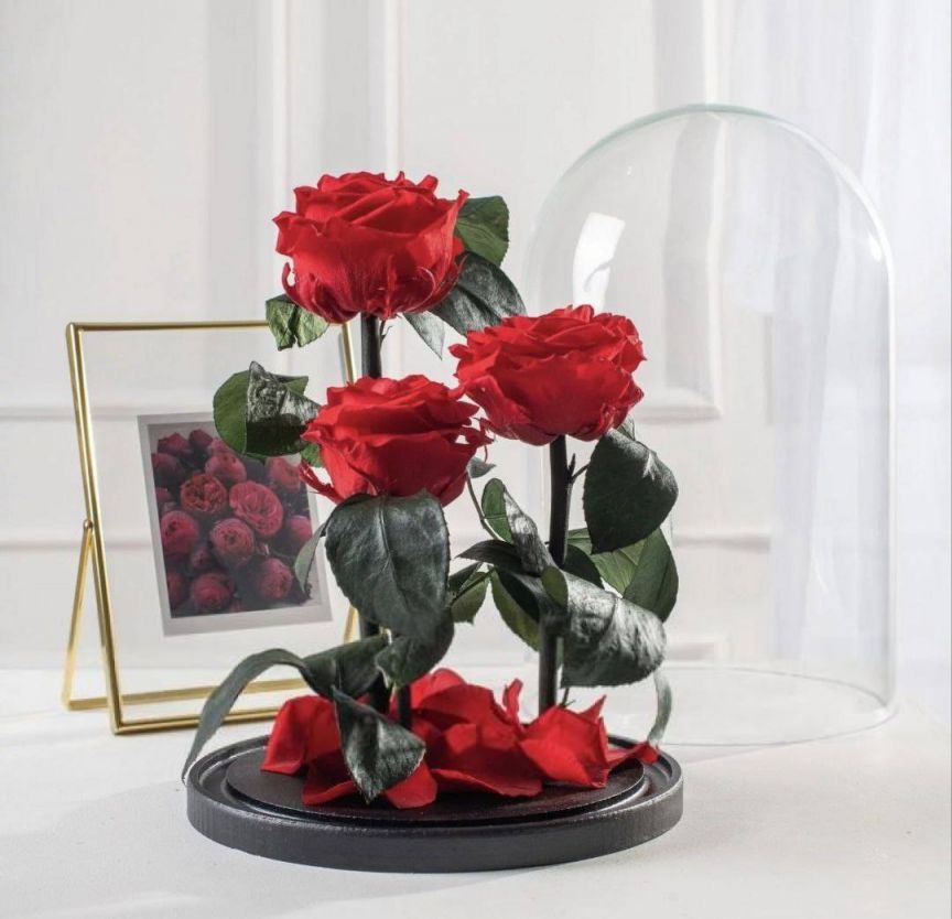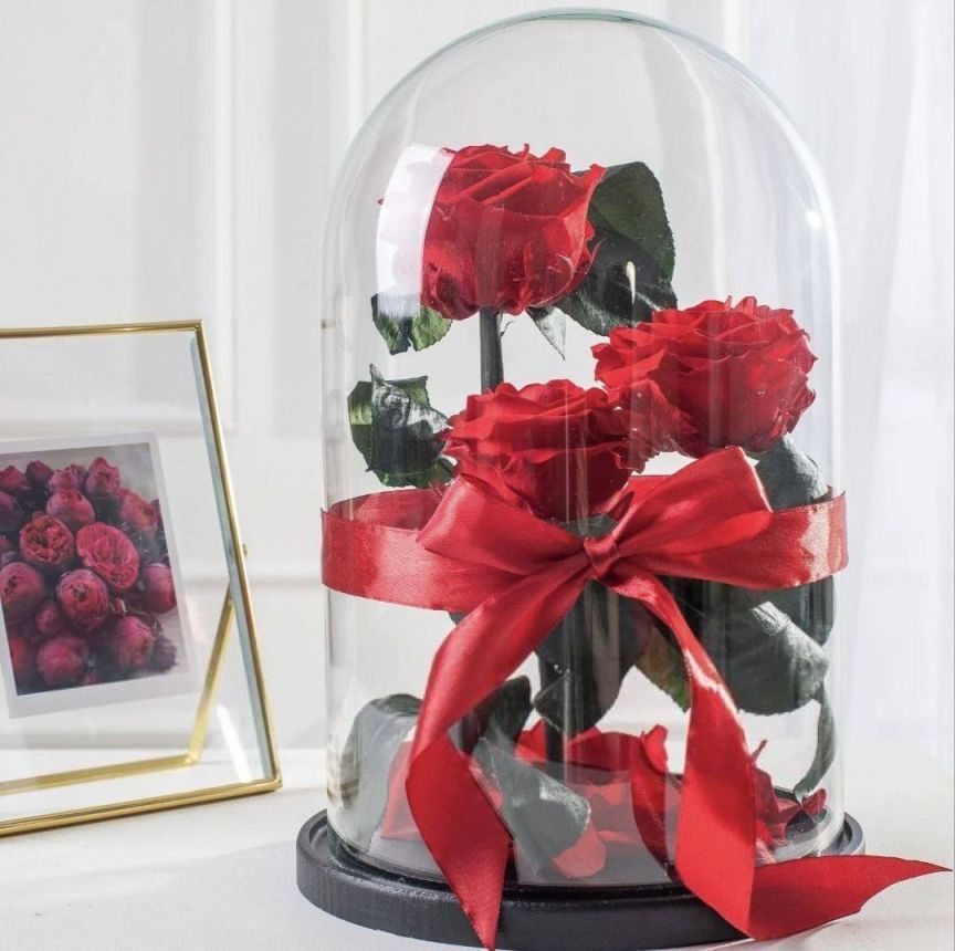 Читать все статьиЖивая вечная роза в колбе, цветы в стеклянной колбе,тройная красная