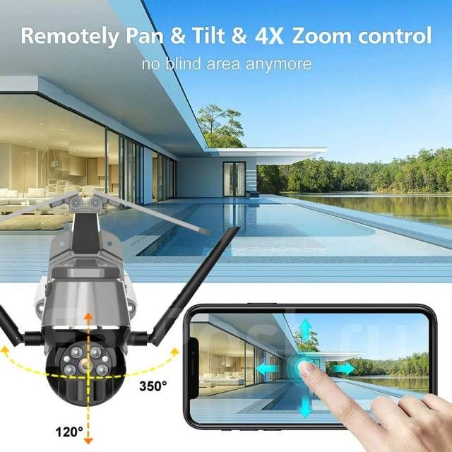 обеспечивает 350 ° по горизонтали и 120 ° по вертикали угол обзора и 4X цифровой зум для достижения почти 360 ° панорамного просмотра, охватывает каждый угол вашего места.