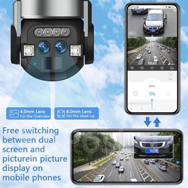 Двойной объектив 6MP/355 ° панорамирования/автоматическое отслеживание/10-кратный оптический Гибридный зум/Обнаружение сигналов тревоги/цветное ночное видение/Рабочая температура от-20 ° до + 60 °/водонепроницаемость на открытом воздухе и защита от снега/Совместимость с Onvif