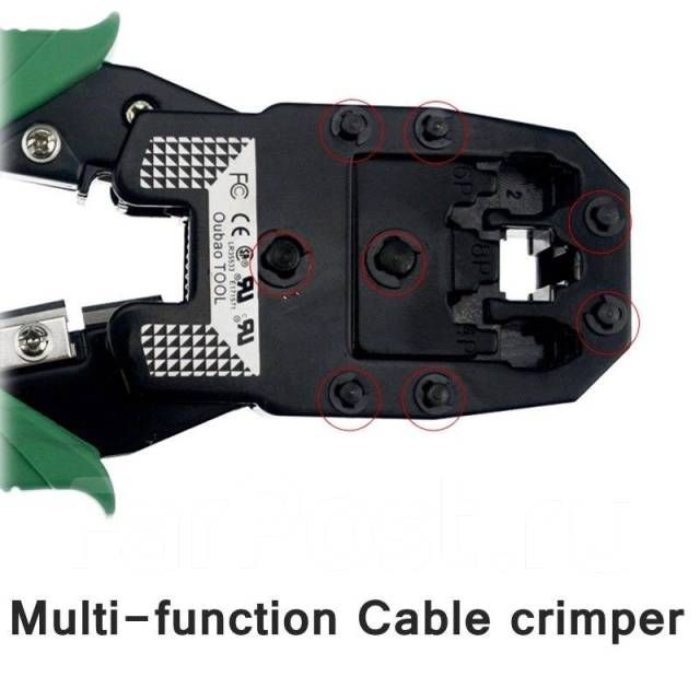 - Совместимые типы штекеров: RJ9: 4P4C, RJ11: 6P2C, 6P4C, RJ12: 6P6C, RJ45: 8P8C