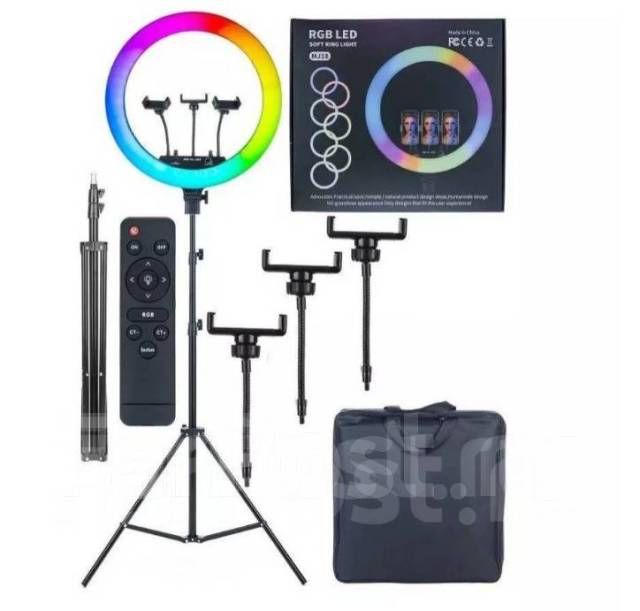 (45см) 18 RGB - это профессиональное освещение для фото и видео съёмки, детальной съёмки, дополнительного освещения. Отличается от аналогов тем, что кроме холодного, тёплого или дневного освещения, получится снимать и фотографировать под разным углом и освещением в синем, красном, зелёном и других цветах. Свет регулируется по интенсивности, режим и цвет можно выбирать. Доступны 3 режима: дневной, холодный, теплый вечерний свет и основные цвета для эффектных фото и видео. Качественный и профессиональный цветной кольцевой свет Raygood MJ-18 подходит для фотографов, блогеров, визажистов