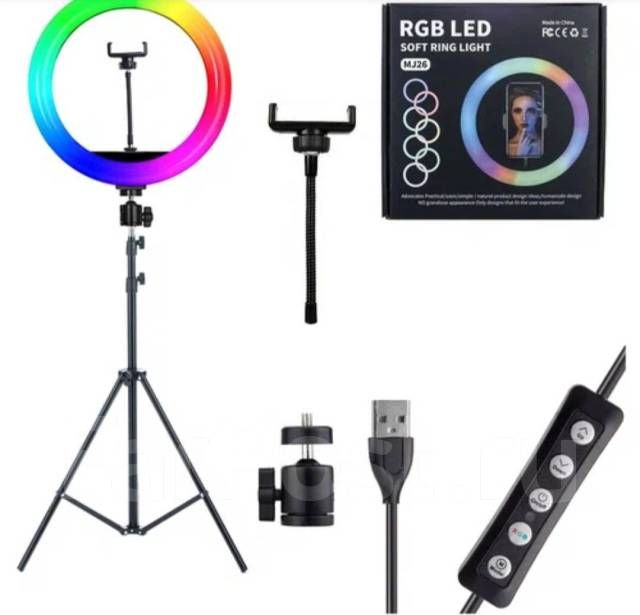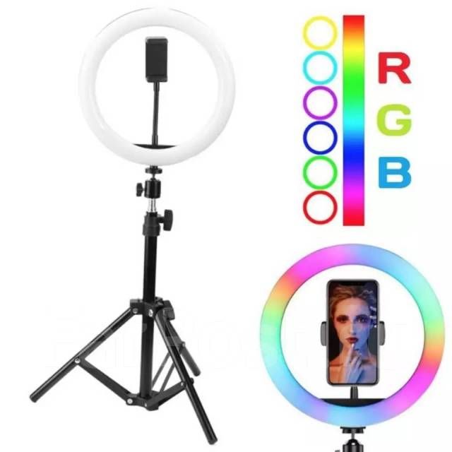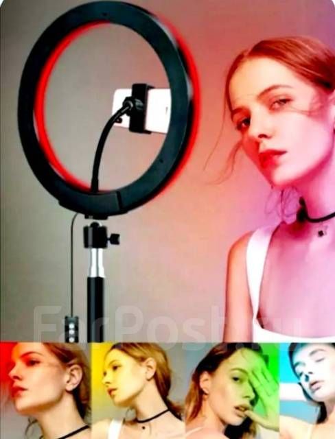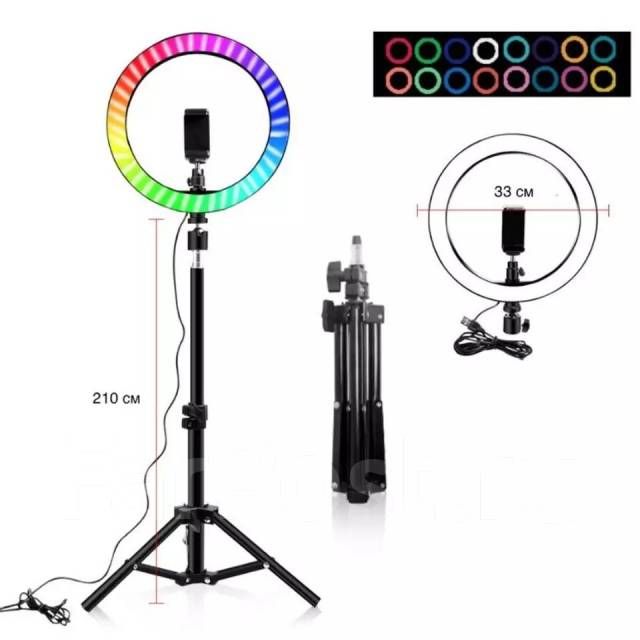 Читать все статьиКольцевая цветная лампа,кольцо для селфи 33см штатив 2 метра усиленный