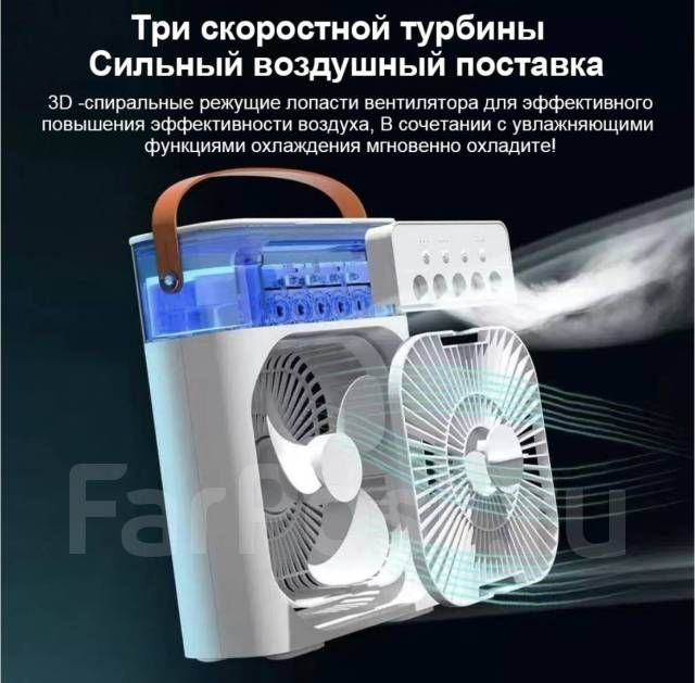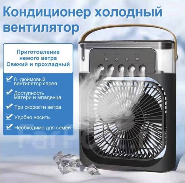Этот портативный мини вентилятор кондиционер - идеальное решение для охлаждения воздуха в домашних условиях. Он мобильный и подходит для использования как внутри помещения, так и на улице.