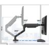Кронштейн не оставит никого равнодушным, не только потому, что подходит для всех мониторов и телевизоров, диагональю от 17" до 30" и весом от 2 кг до 10кг, но и потому, что позволяет легко и просто передвигать монитор в любых плоскостях, и даже менять его положение по вертикали! Всё это благодаря газовой пружине, располагающейся внутри корпуса кронштейна, именно она может зафиксировать монитор в любом положении и менять его не прилагая существенных усилий. Поворачивайте монитор вокруг своей оси на 360°, наклоняйте вверх и вниз, придвигайте или удаляйте от себя, поднимите монитор повыше или опустите пониже — всё это может кронштейн