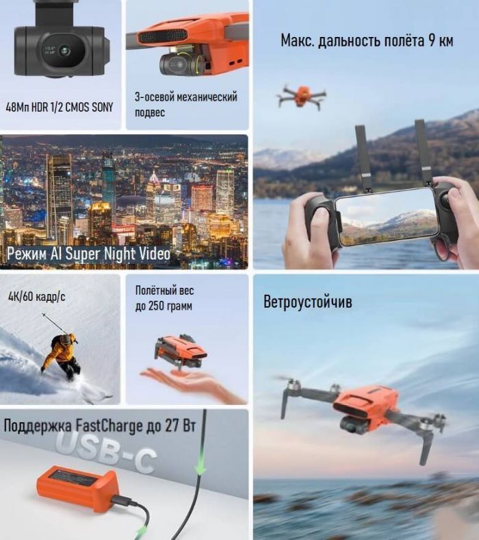 Одной из ключевых особенностей Fimi Mini 3 Combo является его способность записывать видео в формате 4K/60fps, обеспечивая потрясающую детализацию и плавность кадров. Благодаря возможности покадровой съёмки в формате 8K с разрешением 8000*6000 пикселей, этот квадрокоптер создает изображения с невероятной четкостью и качеством, идеальные для профессионального использования.