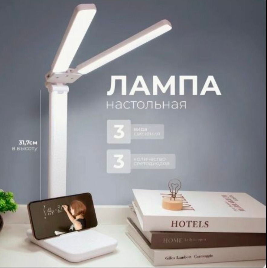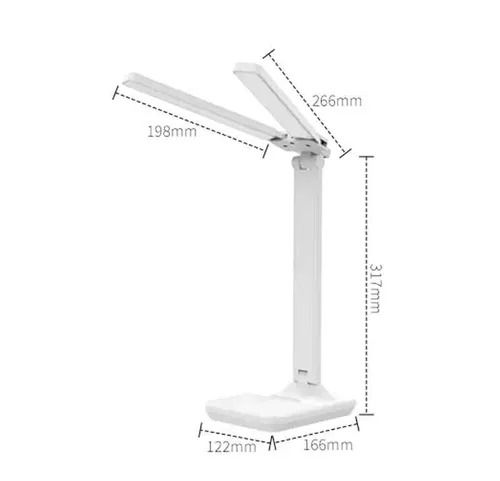 Лампа настольная придаст яркости вашему рабочему месту. Благодаря встроенному диммеру, светодиодный светильник имеет три режимов работы и уровней яркости, с помощью которых можно регулировать яркость свечения. Благодаря двум источникам света которые можно расположить под разными углами больше площадь освещения и меньше отбрасываемая тень при письме и рисовании. Настроить цветовую температуру и уровень освещенности комфортный для ваших глаз можно при помощи сенсорной панели, которая расположена на основании светильника. Угол наклона так же легко меняется под различные нужды. Диодная лампа выполнена в стиле хайтек и легко подойдет к любому современному интерьеру.