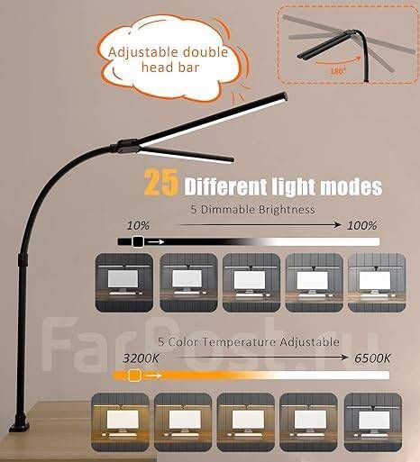 Эта светодиодная настольная лампа мощностью 24 Вт имеет конструкцию с двойной головкой,