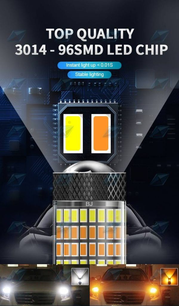 Лампа светодиодная двухрежимная LED T20 (3014-96SMD) (Белый+Желтый), с резистором и проводкой, комплект (2шт)