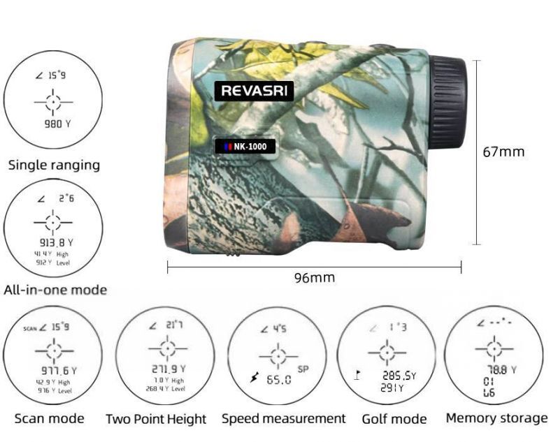 REVASRI Многофункциональный лазерный дальномер необходимый атрибут для измерения расстояния в походных, рабочих и спортивных процессах. Охотничий дальномер на 1000 Метров, 6-Кратный Монокуляр м угловым переключателем. Переключением единиц измерения и компенсацией наклона. Блокировкой флагштока и вибрацией со скоростью, сканированием и двухточечным измерением высоты.