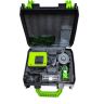 Лазерный уровень Master 3D 360 — это измерительный инструмент, который идеально подходит для строительных или ремонтных работ: выравнивания плитки или другого покрытия, наклейки обоев или бордюров и прочего. Благодаря специальному излучателю горизонтальный и вертикальный лучи проецируется на 360°.При включении вертикальной линии прибор проецирует лазерный крест: 2 перекрещивающиеся под углом 90° проекции. Эти лазерные кресты можно использовать для переноса точек, например, с одной стены на другую. Выравнивание уровня автоматическое. Master 3D 360 Green отличается высокой точностью — погрешность составляет всего 0.3 миллиметра на метр.Главное отличие Master 3D 360 Green от других лазерных уровней — это зелёный лазерный излучатель. Зелёный луч отлично подходит для разметки при ярком свете: зелёную лазерную линию видно лучше, чем красную. AMaster CUBE 3D 360Green можно крепить к штативу или настенному креплению при помощи резьбового соединения 1/4 дюйма. Одна резьба расположена на задней стенке прибора, другая — снизу.Металлическое крепление в форме уголка позволяет установить нивелир на стене, штативе и металлических поверхностях. На одной из его сторон располагается резьба под штатив 5/8 дюйма с переходником, магниты для крепления на металлических поверхностях, отверстие под винт для крепления на вертикальных поверхностях. На другой стороне расположен крепёжный винт с резьбой 1/4 дюйма для соединения с нивелиром.В режиме работы под наклоном прибор можно наклонять. Достаточно зафиксировать маятник, установив клавишу включения в промежуточном положении. При этом будут проецироваться лазерные лучи с необходимым наклоном. Такая функция может понадобиться, например, при установке перил лестницы. Корпус защищён со всех сторон. Резиновые накладки оберегают прибор от поломок при падениях и ударах.Лёгкий алюминиевый штатив с выдвижной колонкой позволяет устанавливать уровень на высоте от 35 до 110 см. Подъёмной частью можно плавно регулировать высоту в диапазоне 25 см. Лазерные очки улучшают видимость лазерного луча при ярком или дневном освещении. Жёсткий пластиковый кейс обеспечивает удобное хранение и транспортировку всего комплекта.Сертификация: Европейский сертификат соответствия
