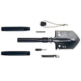Многофункциональная лопата, соединительные трубки (2шт.), рукоятка со стеклобойником, свисток со штифтом для разведения огня, нож, отвертка, чехол.