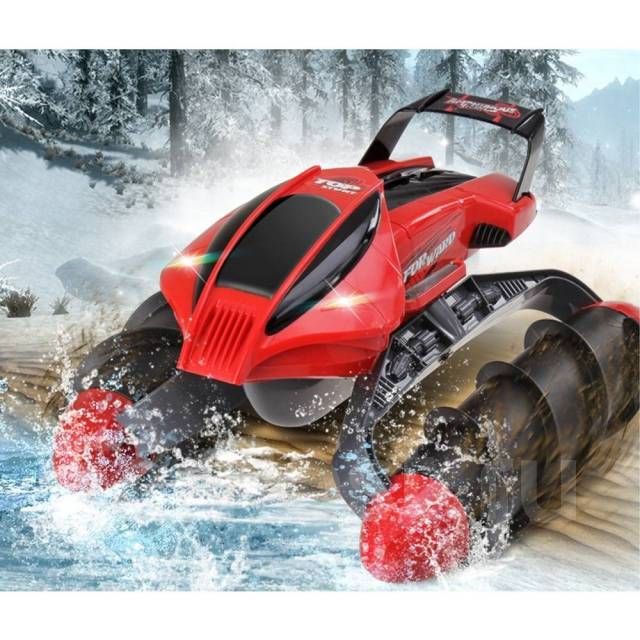 Данная игрушка поражающая воображение. Выглядит просто потрясающе и едет тоже отменно. Этот вездеход одинаково хорошо передвигается как по суше, грязи или снегу, так и по воде, за счет шнеков. Он может ехать боком и быстро разворачиваться. Модель имеет полную водонепроницаемость и ее можно использовать где и когда угодно. Стоит отметить что амфибия имеет яркую подсветку, позволяющую использовать игрушку в темное время суток. Ваш ребенок будет в восторге от такого подарка.