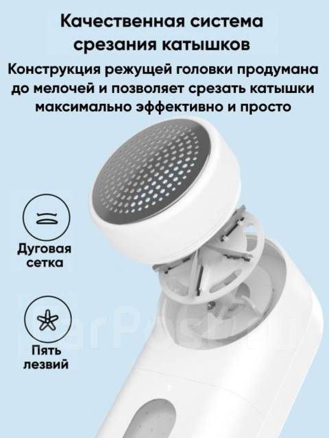 Машинка для удаления катышков обладает мощным двигателем с режущей головкой. Питается устройство от собственного перезаряжаемого аккумулятора, обеспечивающего до 1.5 ч работы. Машинка позволяет быстро и эффективно производить чистку шерсти, кашемира и прочих тканей/материалов. Тонкая сетка (толщиной 0.35 мм) позволяет острым лезвиям головки максимально приблизиться к ткани и при этом не повредить ее при чистке. Вентилятор с отрицательным давлением отлично всасывает отработанные катышки. Для безопасного использования машинка оснащена двойной системой защиты: автоматическое выключение при открытии емкости для отработанных катышков или снятии рабочей головки. Емкость для катышков обладает полупрозрачным окошком, чтобы наблюдать за заполненностью контейнера и своевременно производить его очистку. Небольшой светодиодный индикатор информирует о состоянии устройства (заряд батареи/режим работы). Сменное лезвие .Машинка для удаления катышек Xiaomi. Машинка для удаления катышек Philips менее практичная.