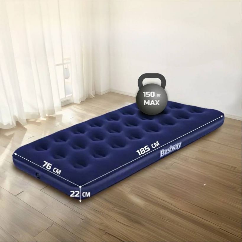 Матрас Bestway, выполненный из прочного флокированного винила, обеспечивает комфортный и здоровый сон в любых условиях. В случае, если свободного пространства в квартире или доме недостаточно, а гости наведываются часто, то надувные матрасы способны стать превосходным решением проблемы. Разместить гостей с комфортом можно на временном месте, просто надув матрас и установив его в свободном помещении.