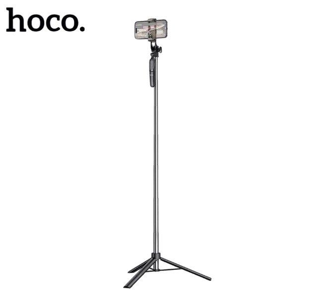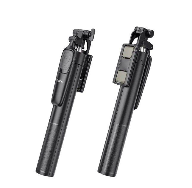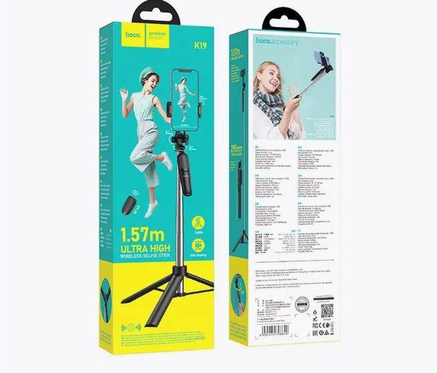 Hoco K19 – это многофункциональный аксессуар совмещающий в себе селфи-палку и трипод. Благодаря съёмному пульту управления вы сможете делать потрясающие фотографии на длинной выдержке, снимать видео, вести прямую трансляцию и тд. Особенностью данной модели является ручной регулятор с помощью которого возможно взяться не за смартфон и отрегулировать наклон до 270 градусов и поворот на 360 градусов соответсвенно. В регуляторе находится фикстор Bluetooth кнопки. Высота или длина этого девайса составляет внушительные 157 см в разложенном состоянии, что позволит Вам производить ручной и напольный режим съемки.