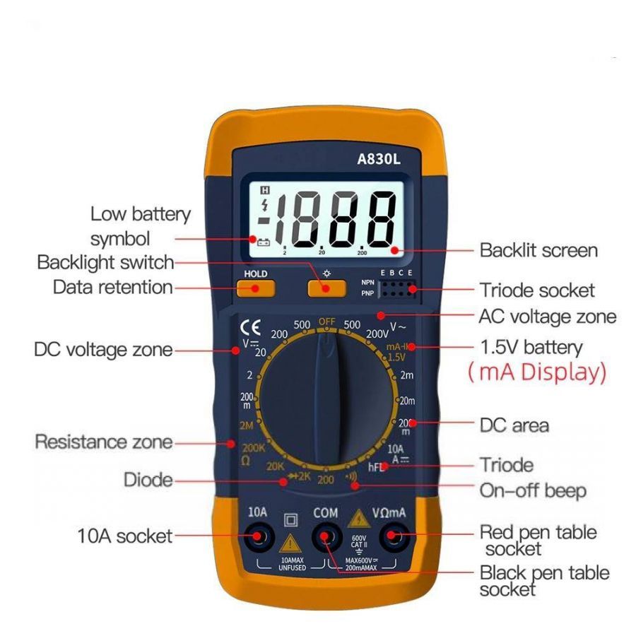 Читать все статьиМультиметр цифровой, тестер постоянного и переменного тока A830L