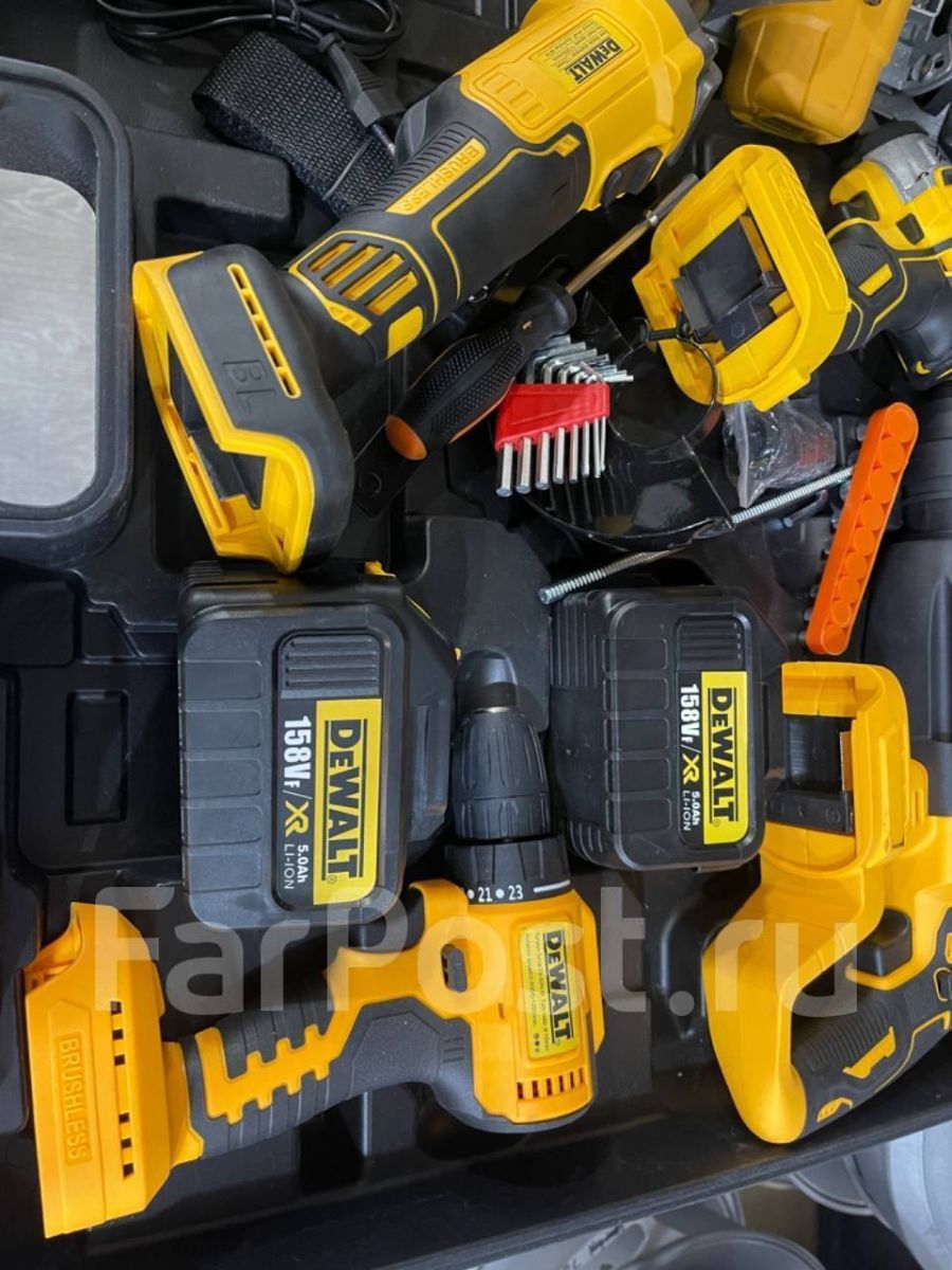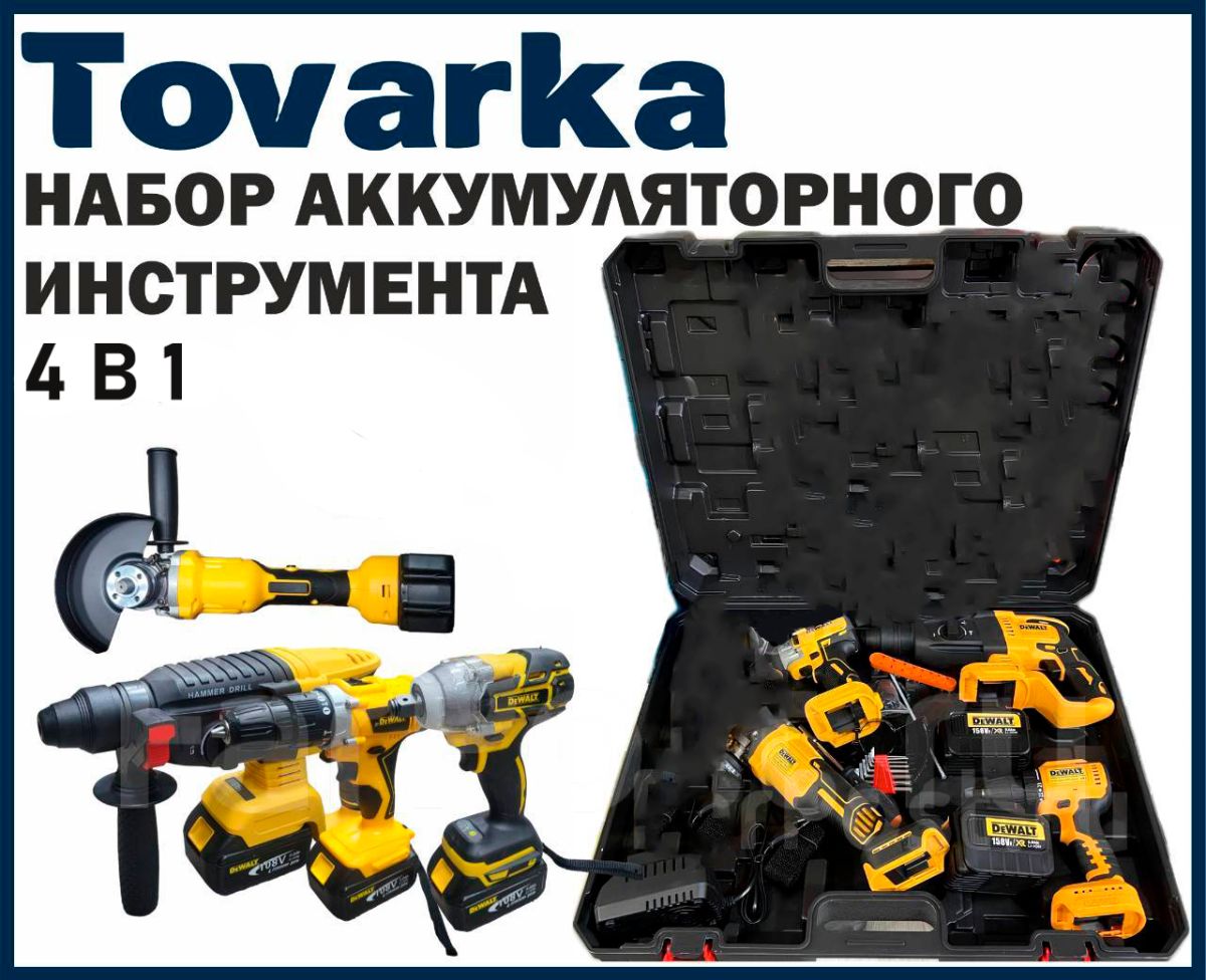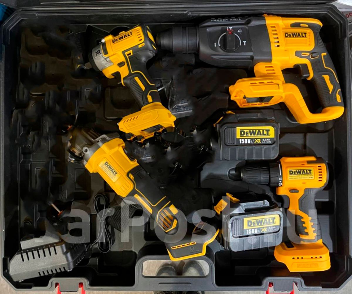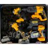 Набор 4 в 1 аккумуляторных инструментов DeWALT все в одном кейсе (гайковерт,ушм ,шуруповерт,перфоратор, и 2 аккумуляторных батареи).