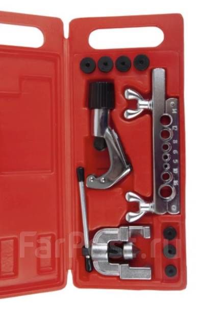 Набор для развальцовки и резки трубок WIEDERKRAFT 1/2 7/16 3/8 5/16 1/4 3/16 5/8 мм WDK-214325 используется для труб из цветных металлов. Набор позволяет нарезать, а также развальцовывать медные, алюминиевые и латунные трубки для соединения частей системы питания, тормозной системы и труб кондиционирования.