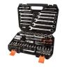 Высокое качество всех элементов набора для автомобиля порадует автомобилиста любого стажа и квалификации, а универсальность комплектации позволит использовать набор как инструменты для дома. Набор торцевых головок, бит, ключей имеет высокие показатели твердости , что говорит о долгом сроке службы и устойчивости к сильным нагрузкам, за счет чего, данный комплект можно использовать как профессиональный инструмент для автосервиса.